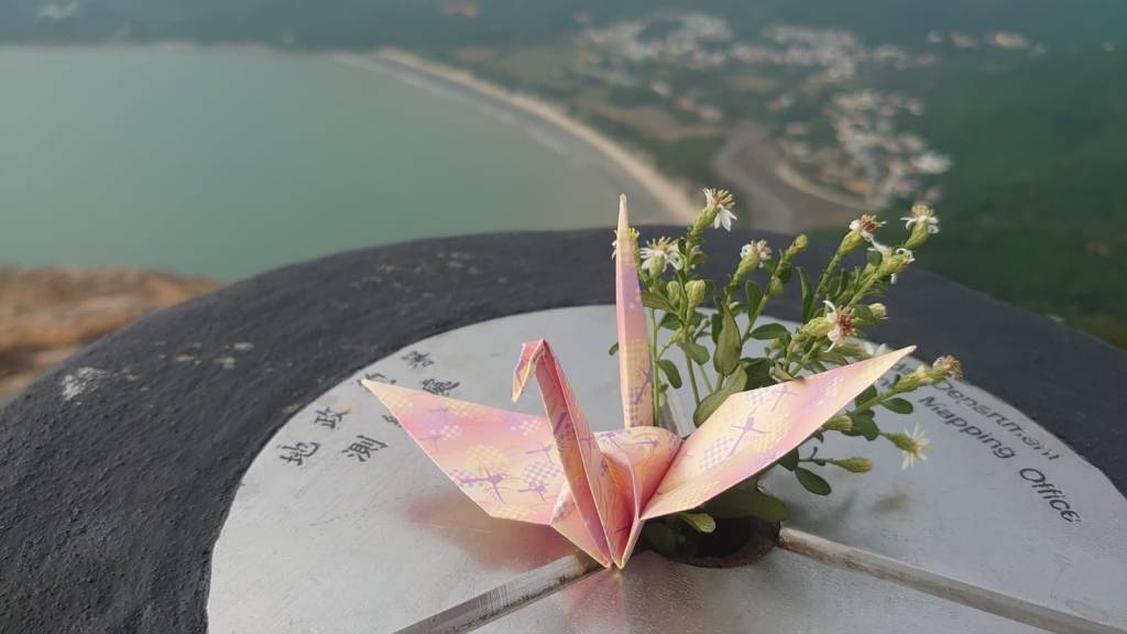 The last few meters was tough, not for my legs but because I started getting messages from my sisters about cremation arrangements and something about the care home she was at had to do it right away. There was a sudden emotional panic of realising I would not be able to say goodbye to my mom properly. I had to keep stopping through the tears but finally arriving at the top with my phone running out of power, I got the news that the cremation can happen in a few days. The panic passed as I got to the top and I was able to place my paper crane and little flowers at the highest point. I took my photo and sent it to my sisters and then shortly after my phone died.